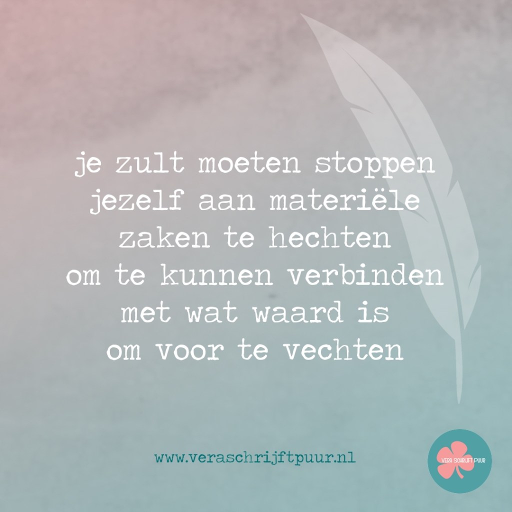 Daar zal ik me nooit aan binden nog een band mee hebben het materiële.